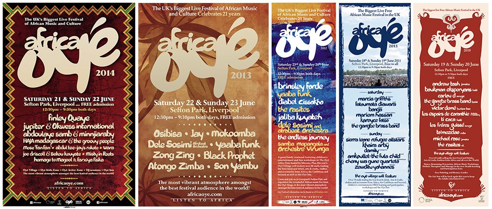 We have worked closely with Africa Oyé since 1996 and have developed the festival brand. We have designed their identity, posters, flyers and brochures.