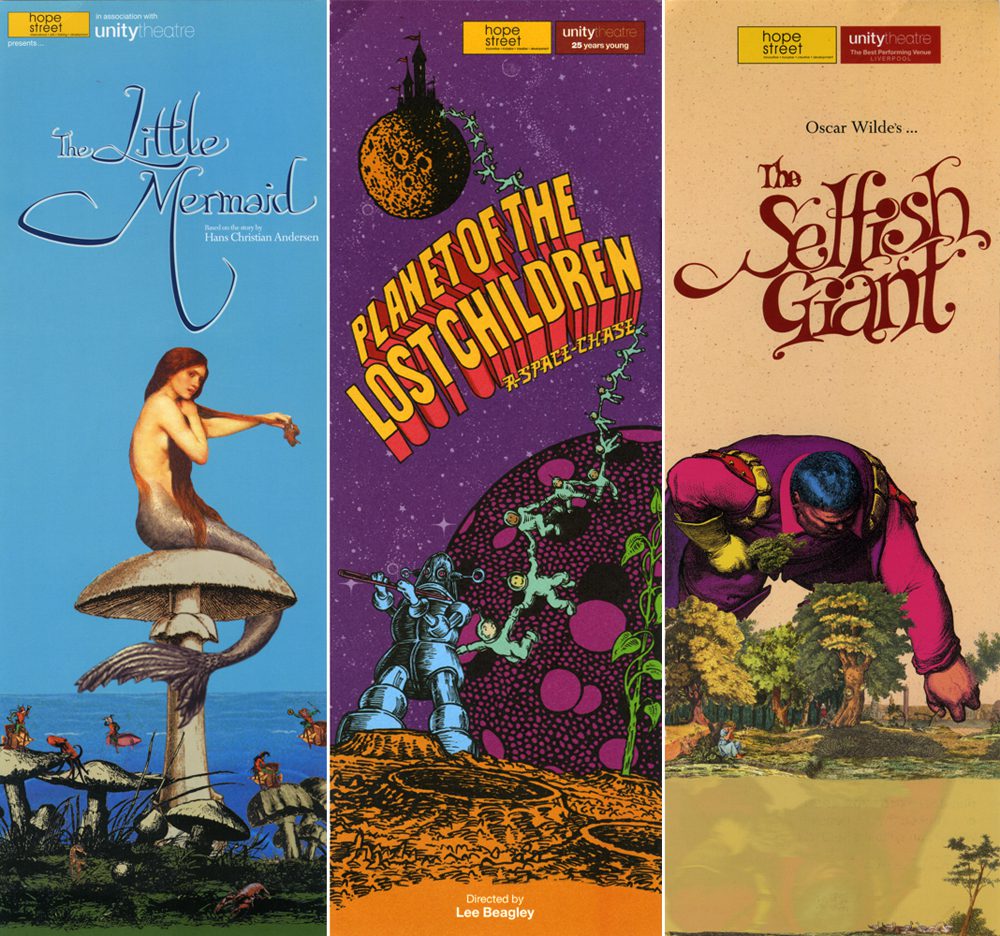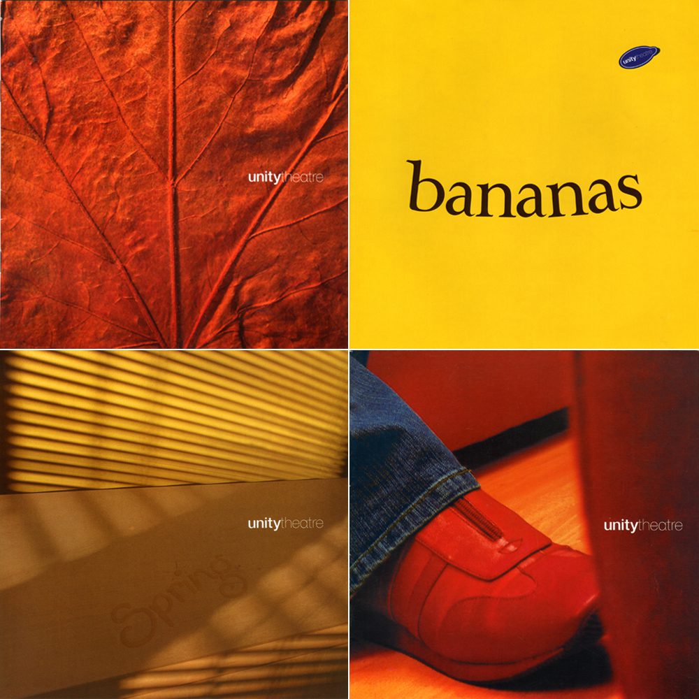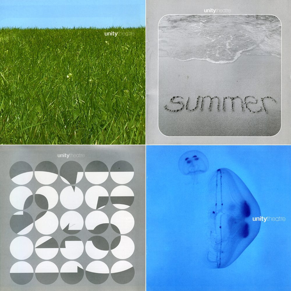 plast-c was first commissioned by unity theatre in 1998 to design their season brochure. Since then we have designed 35 more along with specific performance publicity brochures, flyers, posters and animated graphics for the tv screens within the theatre.